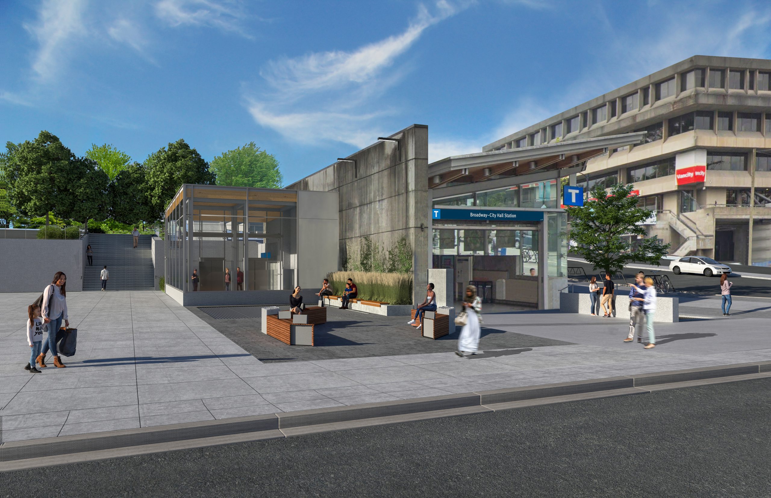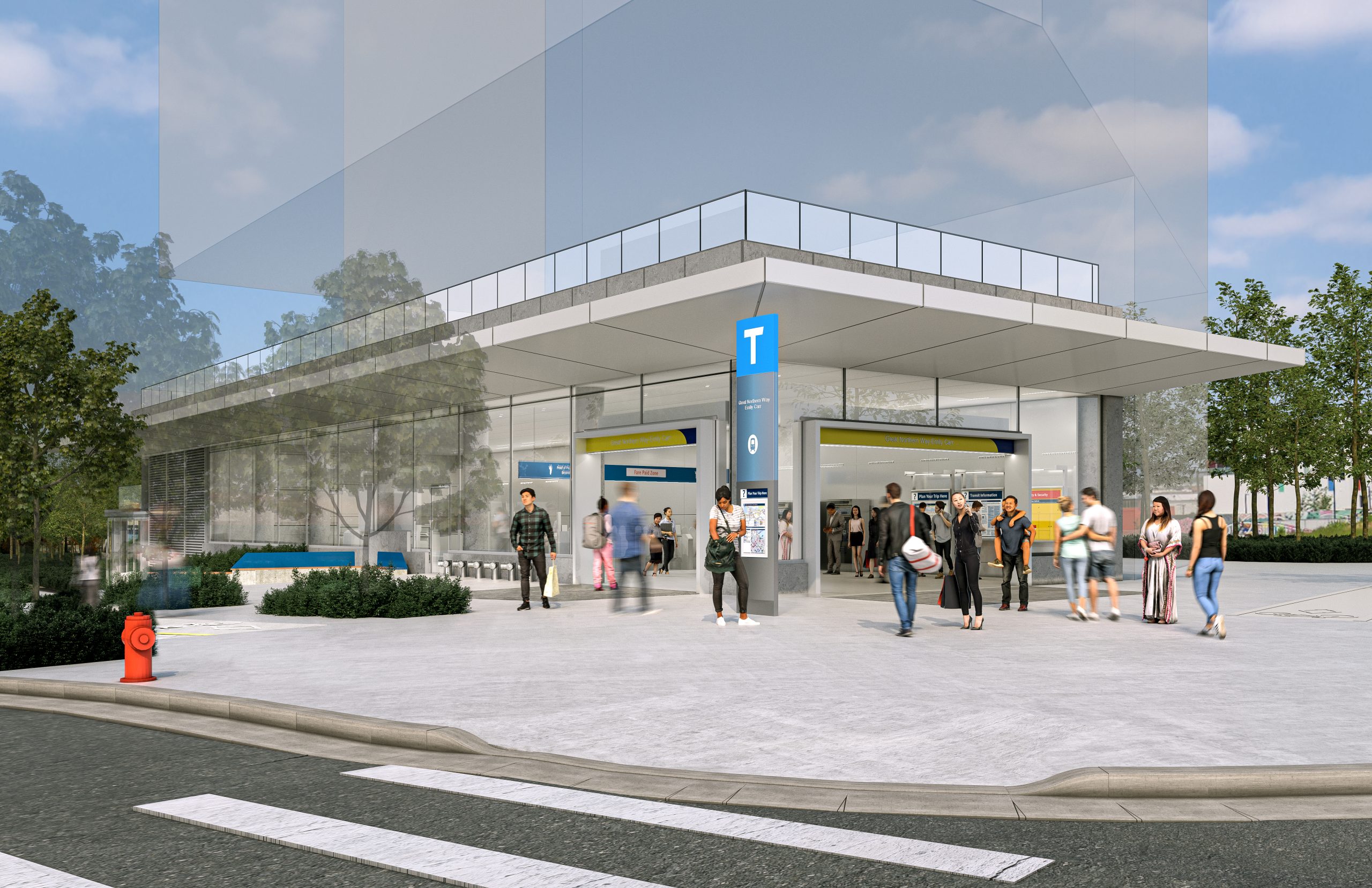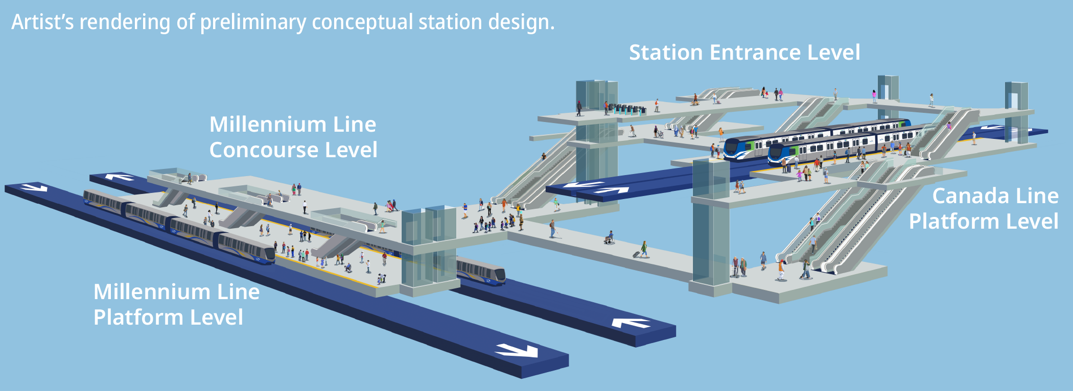 Broadway–City Hall Station will use the existing entrance to the Canada Line at the southeast corner of Broadway and Cambie Street to ensure a convenient underground connection between the Millennium and Canada lines.