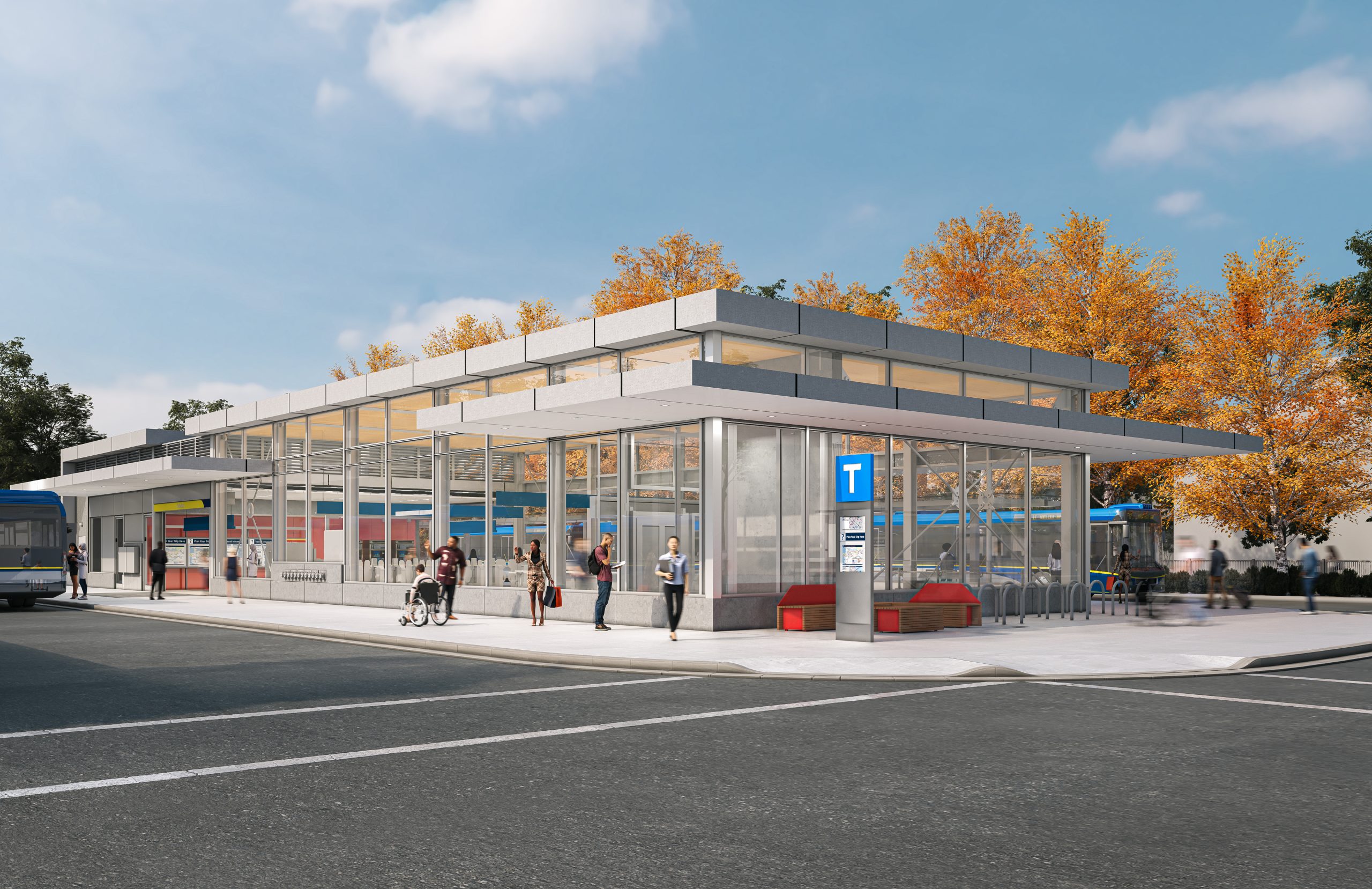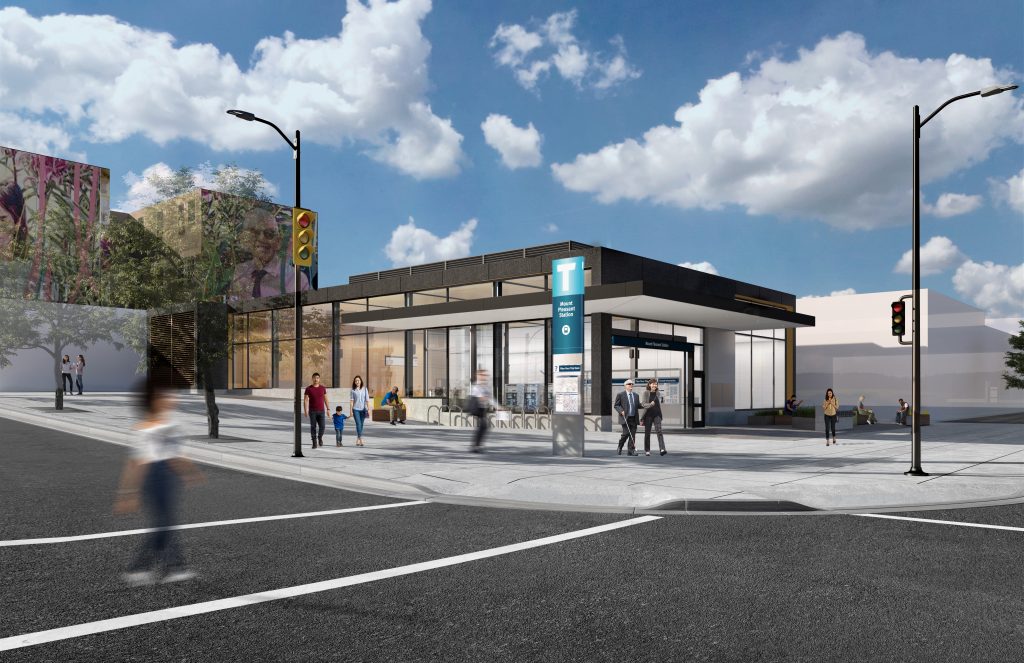 Mount Pleasant Station is located at the southwest corner of Broadway and Main Street.