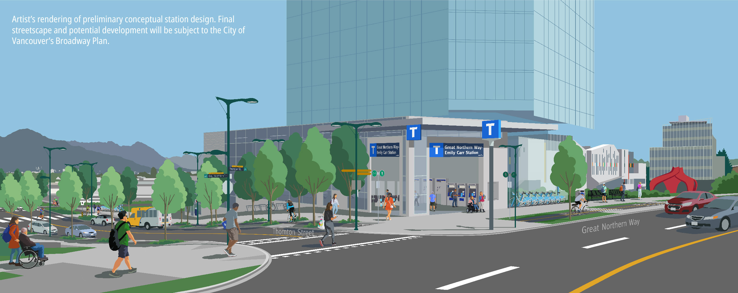 The Broadway Subway Project will extend the Millennium Line 5.7 kilometres from VCC-Clark Station to Arbutus Street, with six new underground stations: