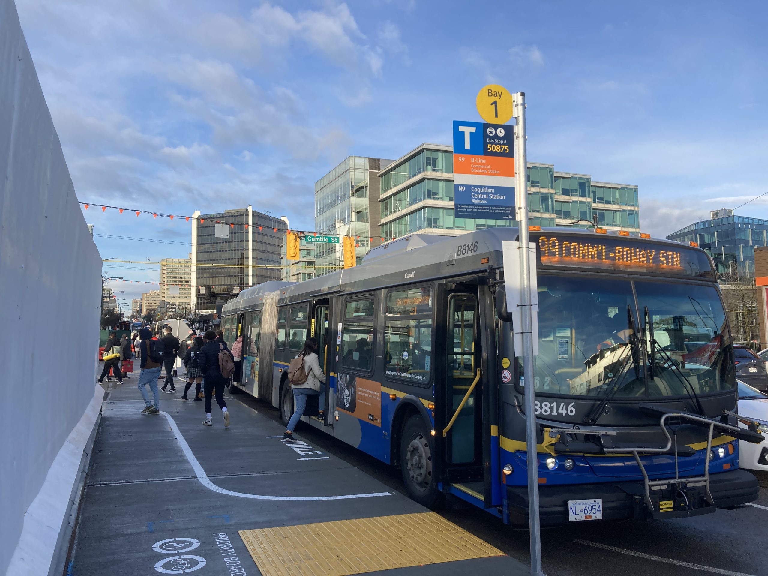 Both the #99 B-Line and #9 local bus service are operating on Broadway throughout the project. Check TransLink’s Trip Planner for up-to-date information about bus service in and around Broadway. We are committed to keeping buses on schedule.