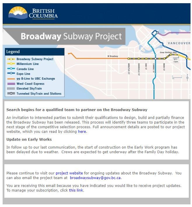 - Millennium Line Broadway Extension: December 2016 to February 2017 Engagement Summary Report
